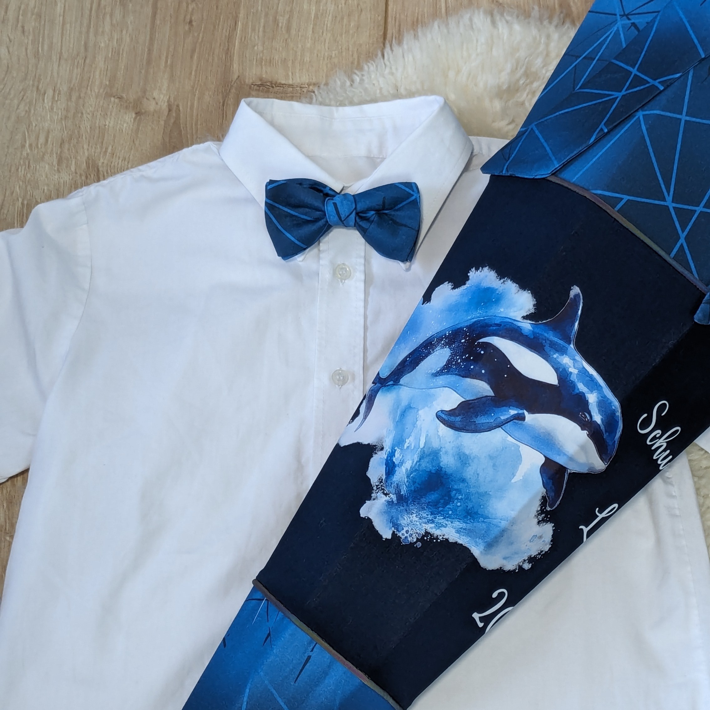 Ich nähe für dein Kind sehr gern eine 85 cm große Zuckertüte (Standardgröße in Ostdeutschland). Und auf Wunsch ein passendes Accessoire für deinen Jungen oder ein wunderschönes Kleid für dein Mädchen.