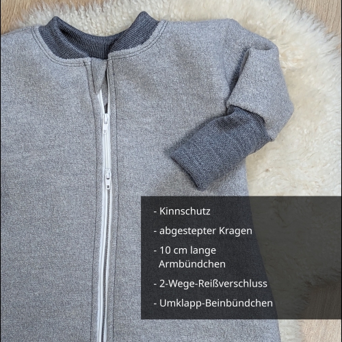 Woll-Schlafsack mit Füßen und Ärmeln in Hellgrau aus Premium-Merinowalk