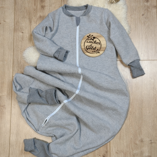 Woll-Schlafsack mit Füßen und Ärmeln in Hellgrau aus Premium-Merinowalk