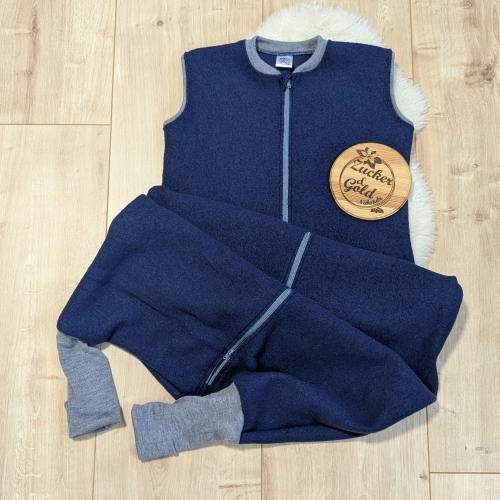 Woll-Schlafsack mit Füßen in Dunkelblau aus Wollfleece