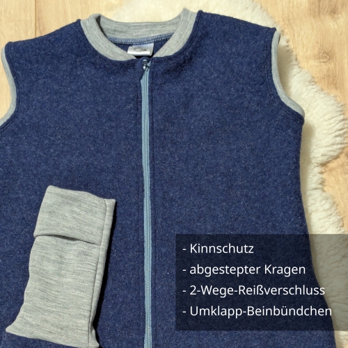 Woll-Schlafsack mit Füßen und Ärmeln in Dunkelblau aus Wollfleece